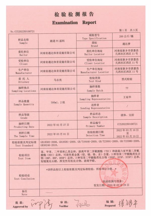 跑道PU底料检验检测报告