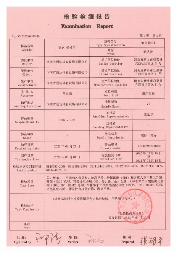 硅 PU 弹性层检验检测报告
